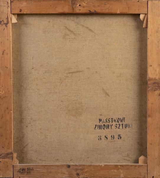On the top left is the author's signature: "Józef Mehoffer 99". On the reverse side of the canvas: "Państwowe Zbiory Stuki 3895".