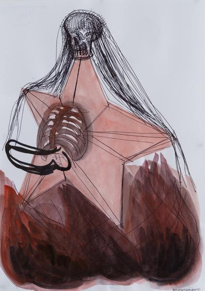 Language has a political nature. Additionally, language makes a person human. Resistance to the aggressor's onslaught can only be carried out by the human that speaks. Ukraine and the rest of the world are facing an evil that has not yet been appropriately named and therefore has not yet been punished. Following the methods of the Soviet Union, russia is constantly violating the dictionary because a Soviet person is not supposed to have their own words. They have been replaced by propaganda slogans that legitimize the inhuman and sadistic genocide of Ukrainians. Speaking one's own language is the artist's task. I create these drawings during the war because I do not want to be silent. (V. Ralko).