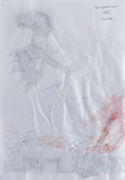 Language has a political nature. Additionally, language makes a person human. Resistance to the aggressor's onslaught can only be carried out by the human that speaks. Ukraine and the rest of the world are facing an evil that has not yet been appropriately named and therefore has not yet been punished. Following the methods of the Soviet Union, russia is constantly violating the dictionary because a Soviet person is not supposed to have their own words. They have been replaced by propaganda slogans that legitimize the inhuman and sadistic genocide of Ukrainians. Speaking one's own language is the artist's task. I create these drawings during the war because I do not want to be silent. (V. Ralko).
