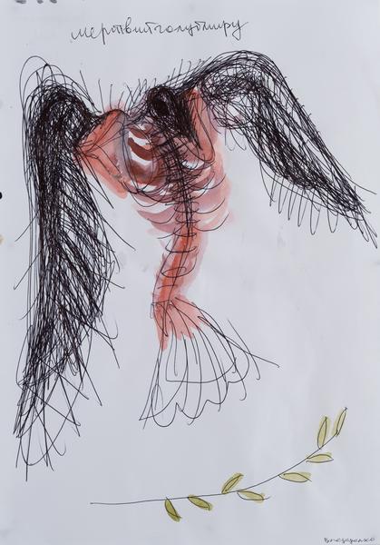 Language has a political nature. Additionally, language makes a person human. Resistance to the aggressor's onslaught can only be carried out by the human that speaks. Ukraine and the rest of the world are facing an evil that has not yet been appropriately named and therefore has not yet been punished. Following the methods of the Soviet Union, russia is constantly violating the dictionary because a Soviet person is not supposed to have their own words. They have been replaced by propaganda slogans that legitimize the inhuman and sadistic genocide of Ukrainians. Speaking one's own language is the artist's task. I create these drawings during the war because I do not want to be silent. (V. Ralko).