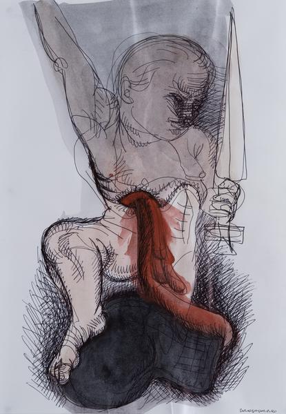 Language has a political nature. Additionally, language makes a person human. Resistance to the aggressor's onslaught can only be carried out by the human that speaks. Ukraine and the rest of the world are facing an evil that has not yet been appropriately named and therefore has not yet been punished. Following the methods of the Soviet Union, russia is constantly violating the dictionary because a Soviet person is not supposed to have their own words. They have been replaced by propaganda slogans that legitimize the inhuman and sadistic genocide of Ukrainians. Speaking one's own language is the artist's task. I create these drawings during the war because I do not want to be silent. (V. Ralko).