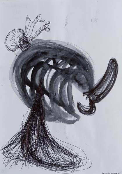 Language has a political nature. Additionally, language makes a person human. Resistance to the aggressor's onslaught can only be carried out by the human that speaks. Ukraine and the rest of the world are facing an evil that has not yet been appropriately named and therefore has not yet been punished. Following the methods of the Soviet Union, russia is constantly violating the dictionary because a Soviet person is not supposed to have their own words. They have been replaced by propaganda slogans that legitimize the inhuman and sadistic genocide of Ukrainians. Speaking one's own language is the artist's task. I create these drawings during the war because I do not want to be silent. (V. Ralko).