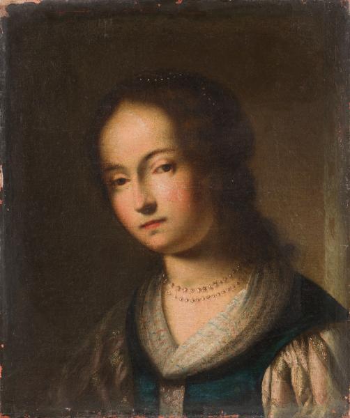 The portrait depicts a young woman turned three-quarters to the left against a dark olive background. Although there are no records about the identity of this person, one can discover much about her from her clothing, jewellery, and pose. She is dressed simply and elegantly. Despite her modest and unassuming appearance, the gaze is direct, confident, and directed towards the viewer. Her eyes have a sense of melancholy, and her lips are pressed together as if concealing emotions. The woman has dark hair parted in the middle. She wears two rows of pearls around her neck. The portrait reflects Holland during the seventeenth century, where some of the finest and most poetic portrayals of women were created.