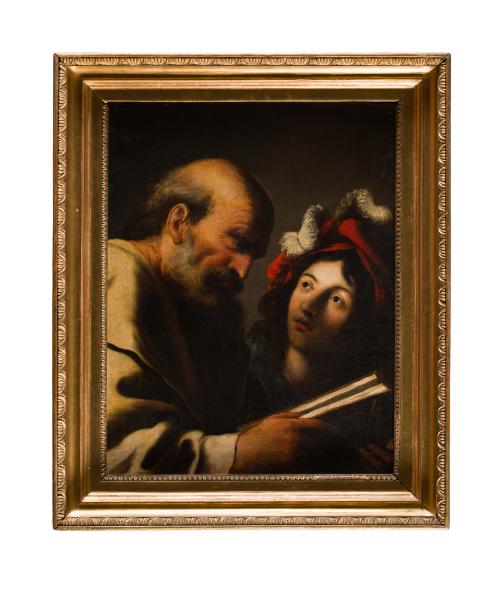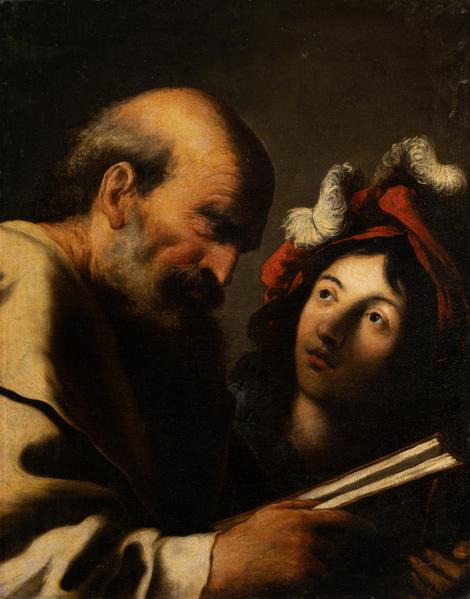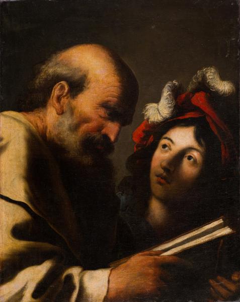 The "Youth and Old Age" painting came to the Gallery's collection from the collection of Count Wiktor Baworowski. Despite the numerous copies of the work, the Lviv composition was likely created by Pietro della Vecchia himself as part of the "The Philosopher and His Disciples" series, one of the paintings of which belongs to the Bavarian art collection. The work is distinguished by plastic integrity. The influences of Caravaggism are indicated by the use of chiaroscuro and tenebroso techniques, as well as an "open" artistic vision that gives an everyday motif a semantic and artistic value. The symbolic interpretation of the work is interesting: the compositional closure ensured by the intersection of the older man's gaze directed at the book and the young man's gaze directed at him is perceived as an expression of the student and teacher's spiritual closeness. The image of the book "unlocks" the composition's chronotope into the infinite of the world's meanings. The viewer's involvement in the circle of "initiates" is provided by the approach of the figures to the border of the intra-picture space and their location at the level of the perceivers. The image of a young man in a Renaissance beret indicates the "historicizing" tendencies in Pietro della Vecchia's work. The timelessness of the older man's clothes lends symbolism and symbolic depth to his figure. The canvas colouring is unique as it accentuates and "manifests" the darkness of shadows, brown-red colours, and golden-white flashes of light among prevailing red.