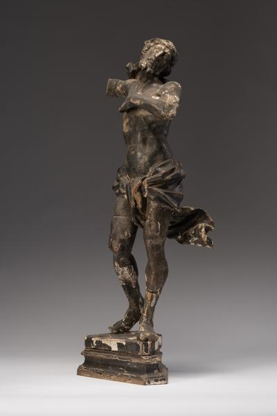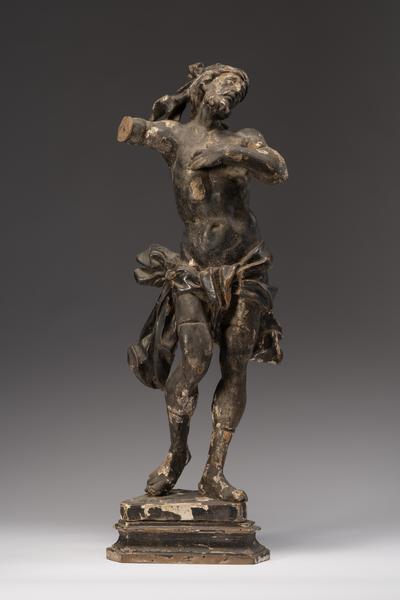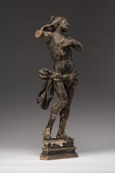 The contrapposto figure on a square base showcases the idealised athletic body of Christ, reminiscent of ancient sculptures. His full-figured body, depicted in motion, is perfectly balanced. The master skilfully, with anatomical accuracy, conveys the saint's softly rendered muscular and slightly bent body, wrapped in a loincloth that envelops the hips. The drapery is tied in a large knot, creating a remarkable interplay of light and shadow through recessed planes of folds with rounded, expressive edges. Christ's head is tilted to the right, conveying tension through the taut neck muscles. Rolled eyes, sunken cheeks, and drawn eyebrows reflect an expression of grief and resignation, while the tense expression creates a slight contrast. The sculptor imbued the figure of Christ with a sense of life and movement.