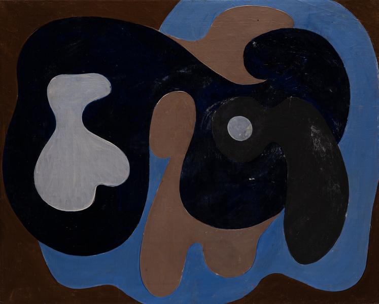 The work consists of a series of biomorphic overlapping shapes that form an overall composition with tonal accents and original and harmonious colour combinations. The basic colours are umbra, light blue with whitewash, bleached ochre, ultramarine, black, and pure white. The applicability of forms is present. The work is influenced by the visual context of the practices of Hans Arp, Carl Buchheister, Sonia and Robert Delaunay, Oleksander Rodchenko, Maurice Estève, Joan Miró, Fernand Léger, Enrico Prampolini, Ihor Snehur, Ely Bielutin, Arshile Gorky, and Volodymyr Nemukhin.