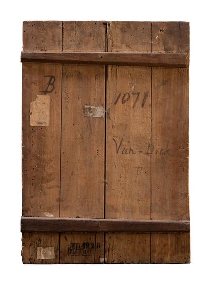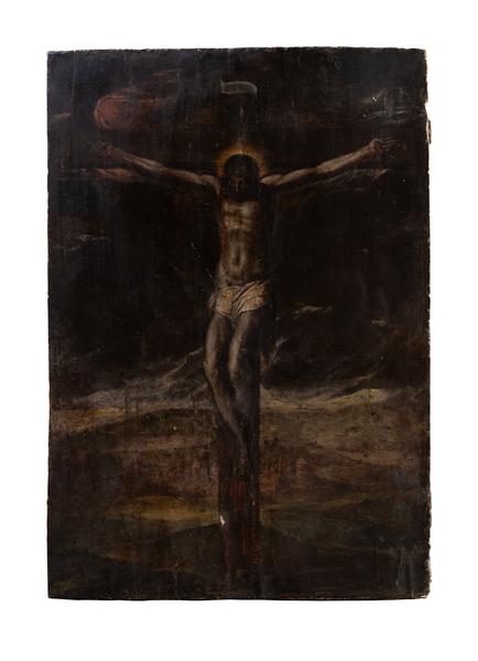 Visually, this painting appears simple, but the depiction is thoughtfully executed, indicating the artist's understanding of its purpose and place. First and foremost, the viewer is presented with the figure of Jesus on the cross, the iconographic symbol of Christianity. We know what this represents and how we should react – with sorrow, grief, empathy, and piety. However, this scene is not set against heavenly gold, as we commonly see in art. Instead, the crucified Jesus is immersed in darkness. No people or familiar biblical characters are portrayed here, as is usually depicted in this theme. The witness is only the viewer, forced to confront the scene face-to-face. Without the depiction of anguished, grief-stricken faces and excessive realism of the dead body, the power of this painting lies in its potential for the viewer's spirituality. Jesus's death is reflected in the darkness of this painting, but it is a death with hope. The canvas background features a landscape with hills and a barely visible city. The sky, occupying most of the background, is covered in dark clouds. At the centre of the composition, filling nearly the entire plane of the painting, is the Crucifixion. On the cross of dark wood is the body of the dead Christ. His head is down, illuminated by the halo's light. Blood flows from Christ's wounds. Above his head is a plaque with the inscription: "I.N.R.I." – "Jesus the Nazarene, King of the Jews". According to the Gospel of John, this phrase was written by Pontius Pilate on the cross. Above both hands of Christ, there are two images in the upper part of the canvas – the moon and the sun. The moon, a symbol of the Old Testament, is above the left hand. Above the right hand is the sun, a symbol of the New Testament. This image can be interpreted as the conclusion of the Old Testament after the sacrificial death of Jesus Christ. The original "Crucifixion" created between 1628 and 1630 (133 x 101) is preserved in the Museum of Art History in Vienna.