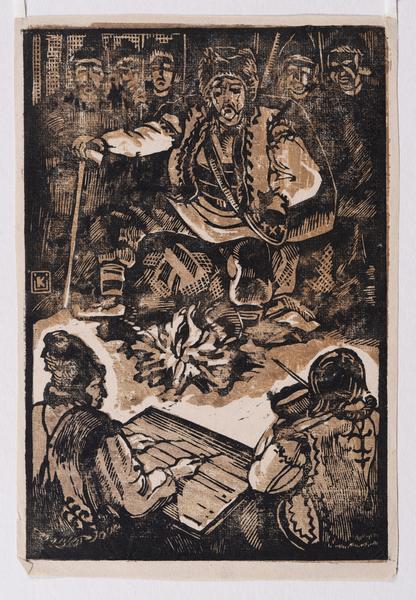 Olena Kulchytska (September 15, 1877, Berezhany – March 8, 1967, Lviv) is an outstanding Ukrainian artist who worked in such types of art as painting, graphics, arts and crafts, carpet weaving, created majolica, book illustrations and postcards, bookplates, bronze and enamel products, furniture and interior design. She received her primary education in Lviv and began her art education at the Lviv School of Arts and Crafts (1901). Then, she completed her art training at the private studio run by Stanislaw Batowski-Kaczor and Roman Bratkowski (1901–1903). In 1907, she graduated from the Vienna School of Industrial Design. Olena Kulchytska's studies in Vienna coincided with the heyday of modern art in Austria, so her work is characterised by decorative form, a tendency to symbolic-allegorical interpretation of images, broad generalisations, and plane solutions. After graduation, the artist taught drawing for many years at secondary schools of Lviv and Przemysl. From 1940, Kulchytska headed the Lviv Ethnographic Museum's folk art department. Between 1945 and 1954, the artist taught graphics at Ivan Fedorov Ukrainian Polygraphic Institute (Ukrainian Academy of Printing), whose professor she became in 1948. In 1967, Olena Kulchytska was awarded the Taras Shevchenko Prize. The artist was famous for her graphic works. She performed engravings on wood, linoleum, and metal in the complex techniques of aquatint and mezzotint. Her following graphic thematic cycles are known: "From the History of Prince Times", "The Hardships of Ukrainian People", "Glorious Women of the Past", "Legends of Mountains and Forests", "Saints of the Ukrainian Church", "Portraits of Ukrainian Writers", "Folk Construction of the Western Regions of Ukraine". During her life, numerous engravings and watercolours by Olena Kulchytska were exhibited in Ukraine and abroad, particularly in Warsaw, Vienna, Prague, Berlin, Rome, Toronto, and Chicago.