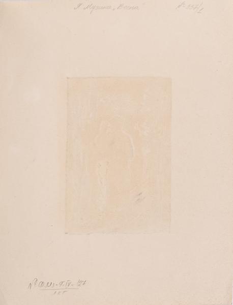 At the bottom left below the image is an author's (portrait) signature in pencil: "Muzyka Yaroslava". On the reverse side along the upper edge is written in pencil: "Y. Muzyka ‘Spring’ No. 337/1".