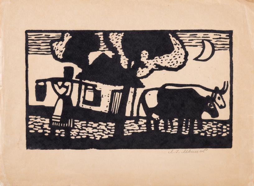 Leopold Levytskyi is a Ukrainian graphic artist and painter. He is also a master of printmaking. The artist had a crucial role in forming modern Ukrainian graphic art. He was born in the village of Burdiakivtsi, Ternopil region. He studied in Paris in 1930–1931, and later at the Academy of Fine Arts in Krakow (1931–1932). Levytskyi started his creative activity during his studies at the Academy of Fine Arts in Krakow, where he evolved as an artist. The artistic environment of Krakow formed the artist's worldview, system of ideals, and political beliefs, which determined the specifics of the painter's creative thinking. He was the initiator and co-founder of the Krakow Group. In 1932, he organised an exhibition closed due to its social orientation and sharp themes of works. The artist was imprisoned for three weeks and expelled from the Academy. In the 1930s, he was constantly watched by the police. From 1935, he lived in Chortkiv, Ternopil region, sometimes visiting Lviv, Krakow, and Stanyslaviv exhibitions. In September 1939, he headed the City Council in Chortkiv, collaborated with the newspaper "New Life", and worked as a decorator at the House of Officers. During World War II, the artist together with his wife Eugenia Nadliar fled to Uzbekistan. In 1946, he settled in Lviv and joined the newly formed Union of Artists of the USSR; his graphic works created in Uzbekistan served as the grounds for his joining the union. The Lviv environment undoubtedly influenced the artist's creative work. In the 1960s, Levytskyi developed a unique stylistic manner combining spontaneity and technical skills. The artist died working at his desk with a chisel in his hand on May 14, 1973. He was buried in Lychakiv Cemetery in Lviv. During his life, Leopold Levytskyi did not have a single personal exhibition. The first occurred in Lviv (1974), a year after the artist's death.