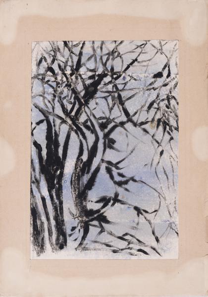 On the reverse, at the top left, in a triangle, the number "108" is written in pencil. The following is an inscription in pencil: "Ya. Muzyka. Winter landscape, monotype, 34.6 x 24.1; frame matting".