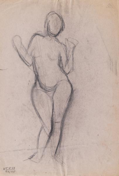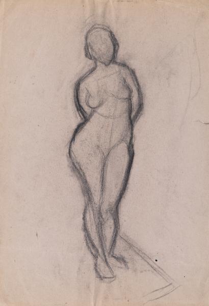 The work is a sketch of a nude female figure standing. On the reverse is a sketch of a nude female figure standing.