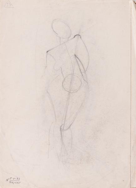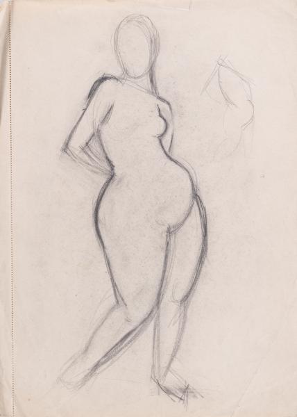 The work is a sketch of a standing nude female figure. On the reverse is a schematic drawing of a human figure.