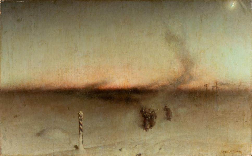 The work of the first Polish symbolist, Witold Pruszkowski, was based on the romantic tradition with its idealistic attitude towards life and death. The creativity of the outstanding poet and playwright Juliusz Slowacki (1809–1849) had a tremendous influence on the artist. The poem "Anhelli" (1838), dedicated to the Polish insurgents sentenced to exile in Siberia, inspired many artists of that time. In addition to W. Pruszkowski, Arthur Grottger and Jacek Malczewski addressed the Siberian theme. One of Witold Pruszkowski's most famous paintings on this theme is titled "Exiled to Siberia". The painting depicts the snowy expanses of Siberia. In the foreground to the left is a border post with the imperial coat of arms. In the endless silence, Polish exiles walk as if heading to another world. The wind of the snowstorm blurs the horizon, merging the earth with the sky. High in the sky, a star shines indifferently with a cold light. On the right, crosses can be seen marking the place where their predecessors fell – those who could not endure the long, arduous journey and did not reach their destination.