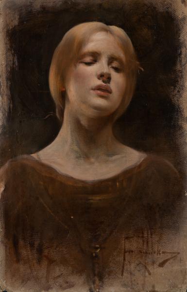 Franciszek Zmurko (July 18, 1859, Lviv – October 9, 1910, Warsaw) was a Polish painter and a representative of salon academic painting. He created works on historical, religious, and mythological themes and portraits. He received his first drawing lessons from the Lviv artist Franciszek Tepa. He continued his studies at art academies in Krakow (a student of Jan Matejko), Vienna, and Munich. The artist gained popularity as a creator of sensual female portraits rendered in warm tones. The artist's later works are characterised by a departure from academically correct drawing towards expression and dynamism. His works were exhibited at exhibitions in Lviv (1880, 1882, 1910), Warsaw, Krakow, Paris, London, Chicago, and San Francisco. The artist's solo exhibition took place posthumously in 1911 in Warsaw.