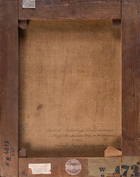 On the reverse, there is an inscription: "Portret Antoniego Brodowskiego. Profesora malarstwa w Warszawie 1831, malował Rafał Hadziewicz".