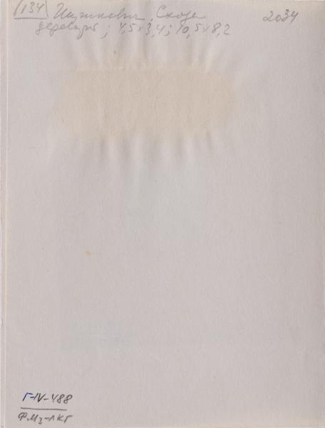To the right under the image, there is the artist's signature in pencil and the date "66". On the back at the top, the number "134" is written in a triangle with a pencil. Tthere is an inscription: "Szuszkiewicz Stairs, woodcut, 4.5 x 3.4; 10.5 x 8.2". To the right, the number "2034" is written in pencil.