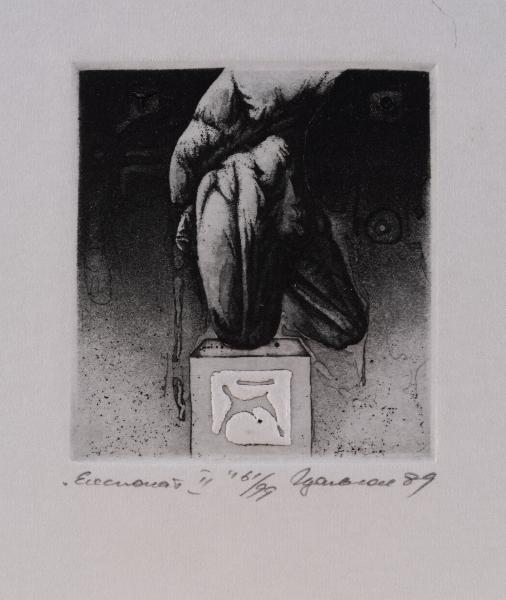 In their Gothic guise these sorts of grotesqueries represented human depravities given their apocalyptic form, that is to say their true form behind appearance, the revelation of otherwise hidden human sin as it will appear on the Judgement Day. Are Podolchak's visions in this fantastic space of repression likewise apocalyptic, though perhaps signalling a political dread of Orwellian nightmares becoming ecstatic?" (Edward Colless, "Essay". To the exhibition catalogue "Igor Podolchak. Ukrainian Printmaker", 1991).