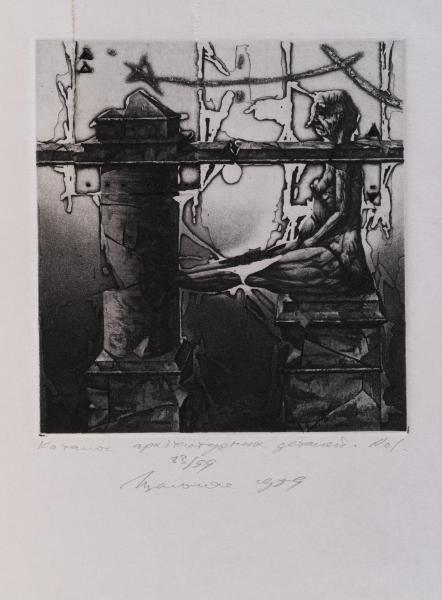 In their Gothic guise these sorts of grotesqueries represented human depravities given their apocalyptic form, that is to say their true form behind appearance, the revelation of otherwise hidden human sin as it will appear on the Judgement Day. Are Podolchak's visions in this fantastic space of repression likewise apocalyptic, though perhaps signalling a political dread of Orwellian nightmares becoming ecstatic?" (Edward Colless, "Essay". To the exhibition catalogue "Igor Podolchak. Ukrainian Printmaker", 1991).