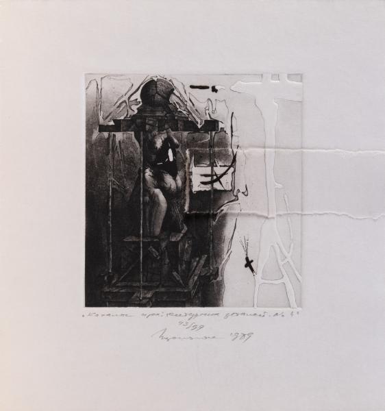 In their Gothic guise these sorts of grotesqueries represented human depravities given their apocalyptic form, that is to say their true form behind appearance, the revelation of otherwise hidden human sin as it will appear on the Judgement Day. Are Podolchak's visions in this fantastic space of repression likewise apocalyptic, though perhaps signalling a political dread of Orwellian nightmares becoming ecstatic?" (Edward Colless, "Essay". To the exhibition catalogue "Igor Podolchak. Ukrainian Printmaker", 1991).