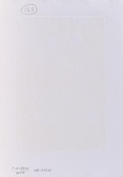 The work is a monochrome black and white print (24.5 х 16.1 cm). The image of a four-tiered stone wall takes up its entire surface. The lower tier is an almost black, smooth wall of blocks. The second level consists of four niches with quarter-spherical tops; above each niche is a large half-cylinder (bas-relief) in a horizontal position. The third tier has five stone consoles protruding from the wall. The fourth level is a huge stone arch spanning the entire width of the print. A pin points down from the top of the arch, piercing a large body that lies under the arch. The body is a wrinkled solid from which hangs a cone-shaped part. Near the lower right corner of the print, there is a part of a person turned to the left in profile. The person's face is wrinkled, and their clothes are indistinct and crumpled.