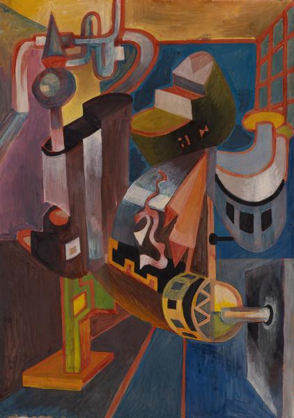 The sketch is formally and probably chronologically related to the work with the inventory number Ж-8198. In a stylised form, the author depicted technical processes and their practical dimension, in which the usual activities are highlighted and unfolded before the observer as a special action, further emphasised by the rich range of colours and tonal and colour accents used by the artist. There is also a radical, almost futuristic approach to the composition, in which the fantasy of chemical and physical processes becomes a kind of radical and solemn, nearly sacred action.