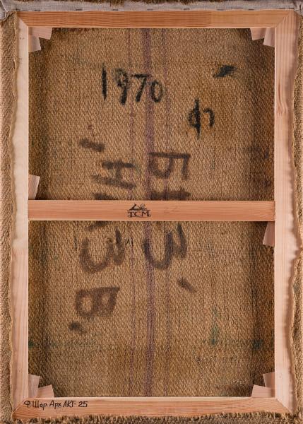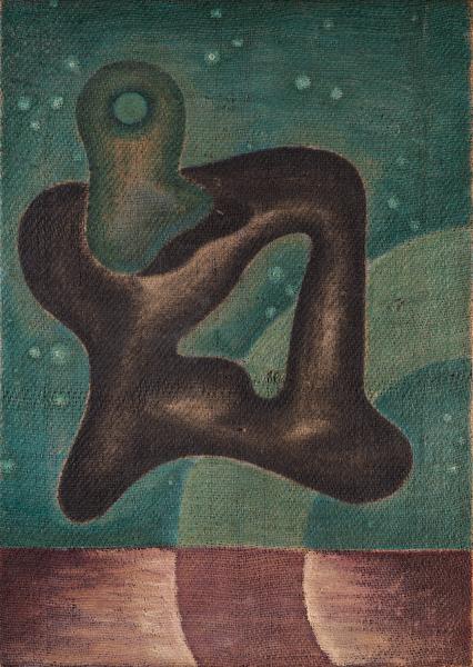 The work is one of the examples of how Arnold Sharhorodskyi worked with the understanding of modernist practices and the study of development in the two-dimensional plane of spatiality in his practice. The artist's approach is in line with Soviet modernists who worked with bionic motifs, such as Yevhen Ablin's monumental objects for public spaces (Relief Mosaic in the Zelenograd Shopping Centre, 1967). Undoubtedly, the practices of earlier artists, such as Hans Arp, were among the likely primary sources of the composition's solution. However, given the presence of objects related to Yevhen Ablin's work in public spaces in the USSR at the time, we can assume a double source of inspiration. As for the composition itself, the harmony of the tonal solution, in which the central biomorphic, probably anthropomorphic motif, is interpreted three-dimensionally, with light and shadow modelling. In contrast to the central object, the background is as flat as possible, rendered in a light, partly cold (greenish) and partly earthy colour scheme (the lower part is soil). In general, this approach to composition refers either to the Platonic-idealistic world of ideas or to the cosmic spatial context in which the transformation or development of living matter takes place. It is worth mentioning that a similar approach to experimenting with abstract imagery can be found in the work of an author of Ukrainian origin who worked in the United States during this period, namely Mykhailo Dzyndra. The latter shows that Arnold Sharhorodskyi's practice at that time was in line with the trends not only in the Soviet but also in the global unified cultural field.