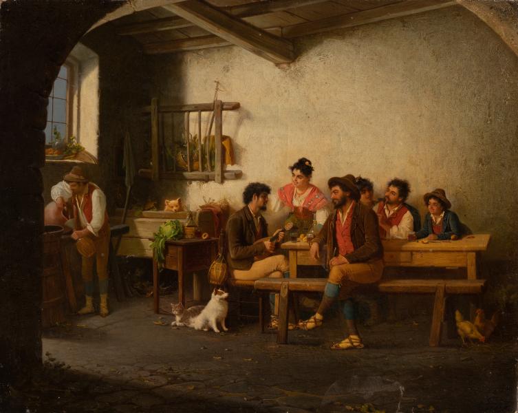 Alessandro Rizzoni (Riga, 1836 – Rome, 1902) was an academic painter of Italian-russian descent. He was born in Riga and acquired the basics of painting from his older brother, Pavel Rizzoni, who was an academic painter. Later, he enrolled in the Imperial Academy of Arts, where he studied under the guidance of Professor Bogdan Willewalde, a renowned battle painter. During his years at the Academy, he received three silver and two gold medals for his paintings on social and everyday life themes. He was awarded a scholarship that allowed him to study abroad for six years, particularly in Italy, Belgium, and France. He became an Academician in 1866 and a Professor in 1868 at the Imperial Academy of Arts. He was a friend and correspondent of Pavel Tretiakov. He gained fame for his paintings depicting scenes of everyday life in Italy.