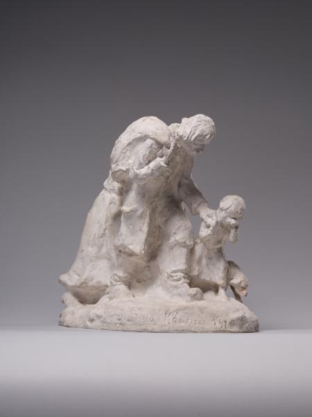 Julia Smolkowna (1880–1944) was a sculptor, member of the Association of Polish Women Artists in Lviv, and granddaughter of the famous Galician politician Franciszek Smolka. She studied at the Lviv School of Art and Industry (1909–1913) and later in Paris (1913–1914). Between 1917 and 1923, she participated in the Association of Polish Women Artists exhibitions in Lviv, where her works were well received. From 1925, she taught sculpture at the Association of Polish Women Artists studio in Lviv at 12 Stefan Batory Street (now Kniazia Romana Street). She died on 28 July 1944 and was buried in the Lychakiv cemetery. The artist is the author of portrait busts, genre compositions, memorial projects, memorial portrait medallions, and bas-reliefs commissioned by A. Zachariewicz and A. Piller and placed on the facades and interiors of some buildings in Lviv. She worked in plaster and bronze. She used a formal system typical of 1900–1918, combining the inspirations of Auguste Rodin, Impressionism, and Secession. In her later works, she used the artistic language of modernised Classicism, "academic Realism," and, less frequently, Art Deco.