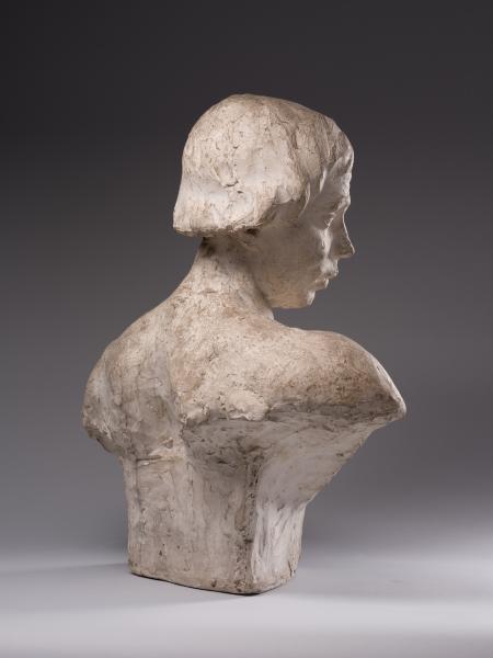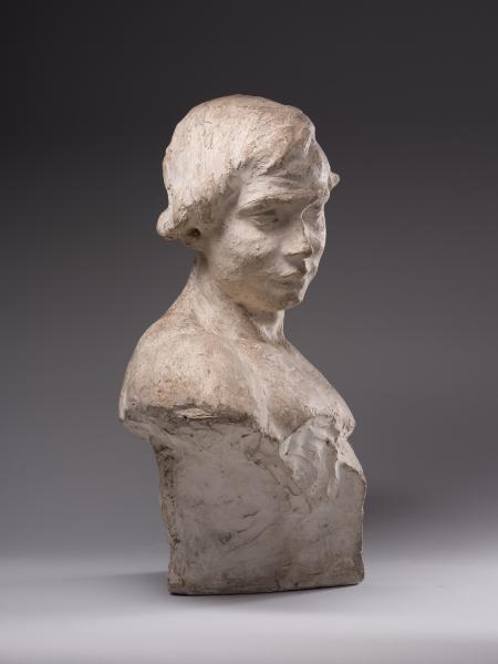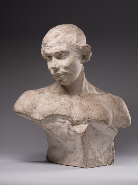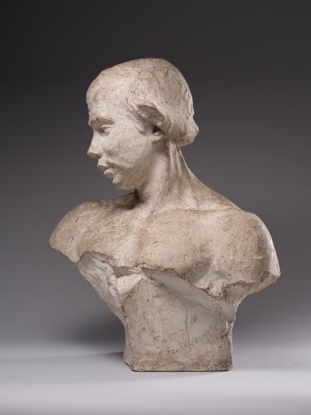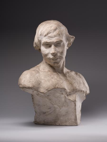 Kazimiera Malaczynska-Pajzderska's oeuvre has a dual figurative and plastic genesis; it is marked by the inspiration of the Secession, the plastic insights of A. Rodin, and modernised readings of classicist traditions, probably influenced by A. Bourdelle. "The Bust of a Man" ("Man's Torso"), created in 1910, is an example of the latter. Exhibited at the General Exhibition of Polish Art in Lviv in 1910, the sculpture is probably a portrait of the 22-year-old Polish painter, teacher and art critic Tadeusz Pruszkowski, whom the author met in Paris during the period when both artists were there. The influence of classical and academic traditions on the figurative and plastic approach to the work is evident in the resonances with Roman busts, particularly Antinous, in modelling a powerful naked torso and the inclination of the head. At the same time, the expressiveness of Kazimiera Malaczynska-Pajzderska's creative style is evident in the emphasised asymmetry, energetic shaping, surface texture, and resulting play of light and shadow. The careful reproduction of individual features contrasts the antiquated torso.