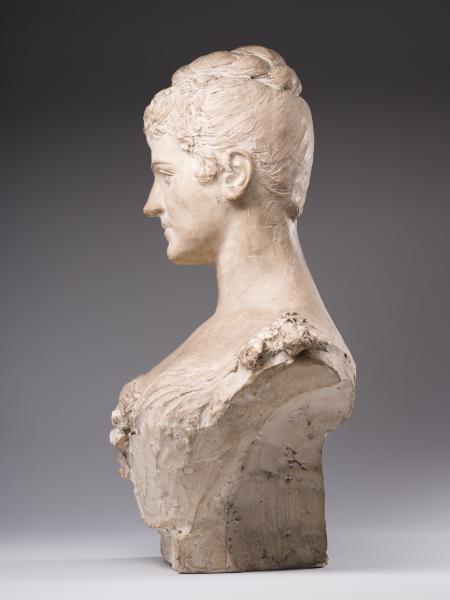 A prominent place in T. Baracz's oeuvre is occupied by portraits of representatives of Lviv's nobility and intellectual and creative circles who visited the sculptor's studio in the Krakow Hotel on Bernardynska Square (now Soborna Square), which became a popular literary and artistic social salon in the city. T. Baracz became famous as a portraitist for the expressiveness and representativeness of his portraits, the speed of their execution, and the skilful reproduction of individual features. Among the female portraits created by the master is a portrait of Countess Felicia Comello, daughter of Count Tadeusz Turkul – the owner of the first neo-Gothic palace at 50a Pekarska Street in Lviv. In contrast to later, more refined and organic female portraits, this one is somewhat static, emphatically representative, and excessively detailed, with a careful reproduction of a luxurious dress with a décolleté, a decorative bouquet and hairstyle, characterised by idealisation and levelling of age-related features. Her aristocratic origins are indicated by a straight posture, calm self-confidence and self-respect, in keeping with the principle of "noblesse oblige".