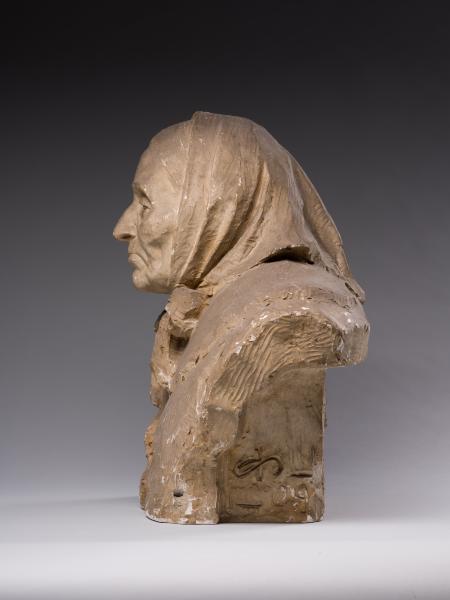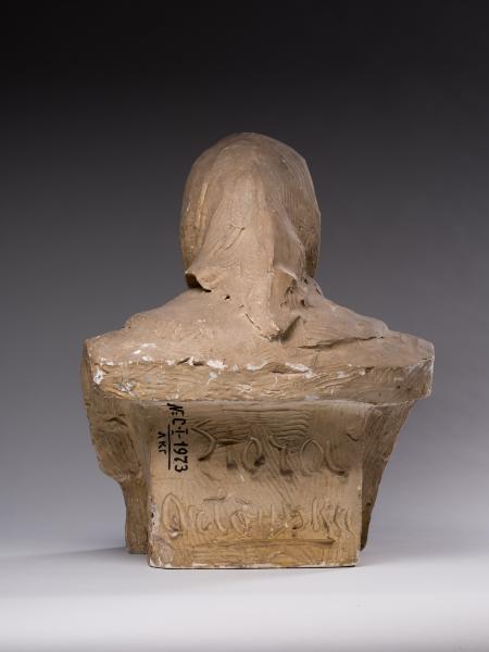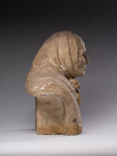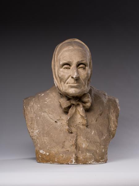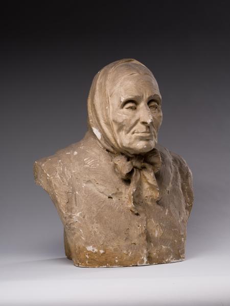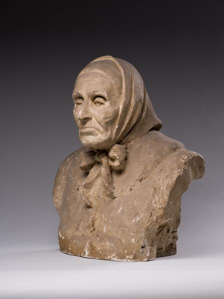 "The Bust of Orlowska" ("Portrait of an Older Woman") (1909) is Smolkowna's first easel sculpture, created during her studies at the Lviv Art and Industrial School in 1909–1913. The artist's novice stage is indicated by the minimalism of the artistic generalisation, a thorough study of the clothes, the face and its anatomical features; a subtle psychological characterisation and skilful modelling of forms evidence her outstanding creative talent. The plastic characteristics of the work are the painterly quality and the impressionistic dynamism of the forms, characteristic of the sculptor's work in the following years.
