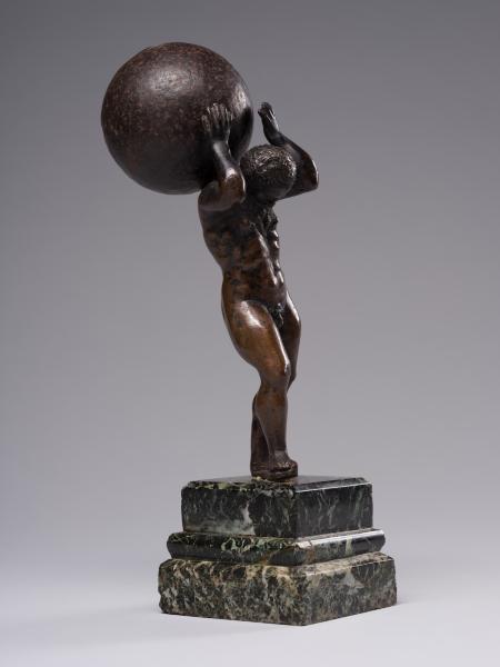 Atlas or Atlantis (Greek: Ἄτλας) is a mighty titan in Greek mythology who held the sky on his shoulders. He was the son of the titan Iapetus and Clymene, the brother of Prometheus, Epimetheus and Menestheus. According to mythology, Atlantis was doomed to hold the firmament on his shoulders forever as a punishment for supporting the Titans' fight against Zeus. According to another myth, the support of the sky was Perseus' revenge for being denied hospitality by the Titan. Atlantis is a symbol of endurance. It is associated with the theme of feasibility and overwhelm.