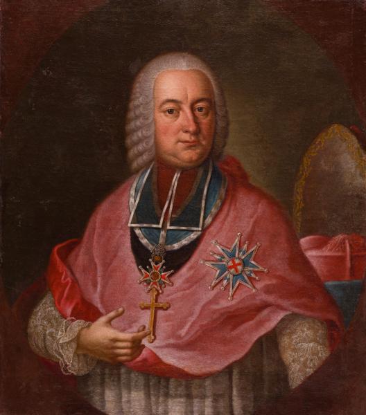 The portrait depicts Archbishop Michal Poniatowski (1736–1794) wearing the Order of the White Eagle – the highest honour of the Polish-Lithuanian Commonwealth. Michal Poniatowski was the son of Stanislaw Poniatowski, the castellan of Krakow, and Konstancja from the Czartoryski family. He was the youngest brother of King Stanislaw August. He studied at Warsaw College and pursued theology and canon law in Rome. In 1760, he was ordained as a priest. He worked as a secretary for his uncle Michal Czartoryski, the Grand Chancellor of Lithuania. Shortly after assuming the position of Bishop of Plock, he became the Coadjutor of Krakow, and by the end of 1784, he received a royal nomination as Archbishop of Gniezno. He also became the commander of the abbey in Tyniec and was a notable patron of the University of Krakow. Michal Poniatowski built a palace in Jablonna, where he resided. From 1789 to 1791, he visited Venice, Bologna, Florence, Rome, Naples, Paris, London, Brussels, Leuven, The Hague, and Dresden. The hierarch remained actively involved in Poland's political affairs until the end of his life, serving as a Permanent Council member and the head of the Commission of National Education.