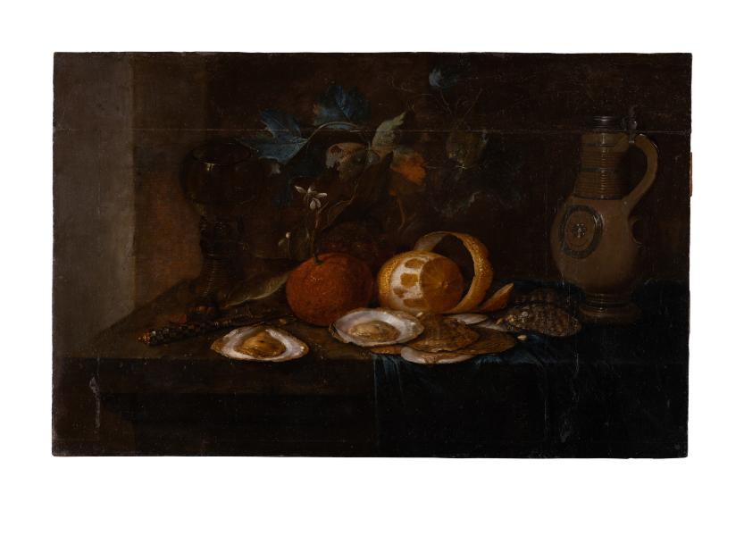 In the 17th century, the Netherlands experienced the formation of a new society, along with its political and economic system. An incredible rise in science, literature, and visual arts takes place. The world of the burgher becomes the measure of all that happens and finds reflection in visual arts. Now, still lifes become an integral part of the burgher's life, reflecting their daily existence and serving as the main decoration of the interior. Dutch artists could reveal the essence and materiality of each object and its relationship with humans. The still life was not just a painting displaying various products on a table but a genuine source of symbols that contemporary viewers understood. Very often, it contained a hidden message for the viewer. The symbols depicted in still lifes of this era were meant to remind viewers of the transience of human life or carried a religious connotation. In the "Still Life with Oysters", oysters are arranged on the table in the foreground, symbolising abundance. Ripened fruits of autumn represent fertility. The glass (the goblet on the left) symbolises fragility. Objects not only individualise their owner but also gain individuality themselves. It is here that the source of the relationship between the object and the subject lies. The presence of a person is indicated by the carelessly tossed knife on the table, the haphazardly arranged oysters, and the cut lemon. Lemons symbolised deceit and the fallacy of earthly pleasures. And a peeled lemon, as seen in the still life, signified cunning.