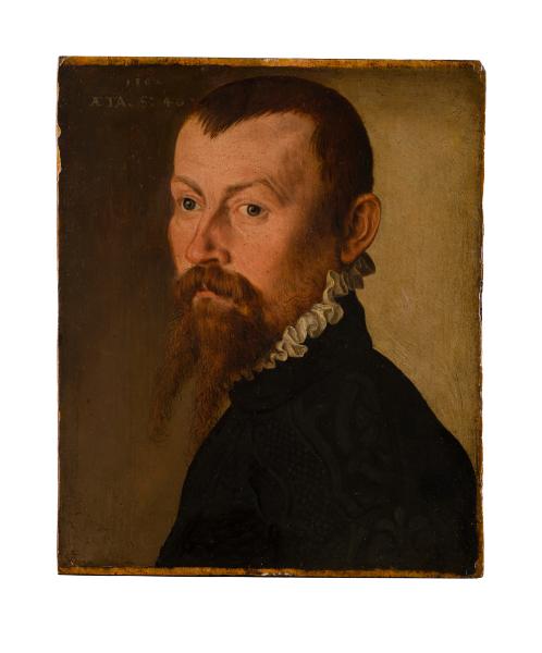 The painting, probably by Dirck Barendsz, depicts a young man, approximately forty years old. Researchers have noted that the portrayed figure bears a resemblance in style and interpretation to the models from the artist's work "The Banquet of the Officers of the Civic Guard" (1566). However, the author of this work could be another Northern Netherlandish artist of that time who worked under the creative solid influence of Dirck Barendsz in Haarlem – Maarten van Heemskerck (1498–1574), who created in a Mannerist style. He painted religious and mythological compositions and was renowned as one of the finest portraitists of his time. He also worked in graphic arts.