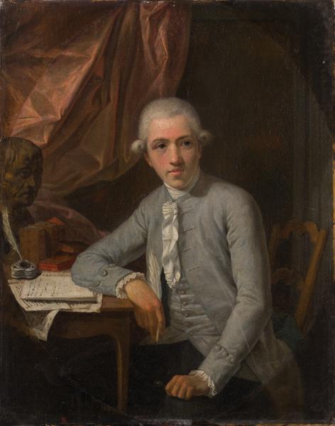 The painting depicts a young man seated at a table, turned toward the viewer. Before us is a young art scholar, theorist of Classicism, and historian, Joachim Winckelmann. He was a German art historian and antiquarian, the founder of modern concepts of ancient art and archaeology. Born into a poor family, he was nevertheless allowed to attend a gymnasium in Berlin, from which he graduated in 1736. Two years later, he was awarded a scholarship to study theology at the University of Halle, where he primarily focused on ancient literature. After graduating from the university in 1740, he worked as a private tutor for quite some time. From 1741, he studied medicine, and between 1743 and 1748, he worked at a school near Berlin, where he taught Hebrew and Greek, as well as geometry, logic, and Latin. Later, he worked as a librarian near Dresden, allowing him to view and study the artistic treasures collected there. After visiting Naples, Herculaneum and Pompeii in 1758, Joachim published his major work, "The History of the Art of Antiquity". From 1763, he served as the chief antiquarian and "President of Antiquities" at the Vatican. The artist depicted him as a young scholar, surrounded by the attributes of learning – notes and an inkwell.