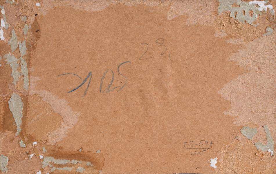 In the bottom left, there is an inscription and a signature: "Jerusalim w …". Further, indistinct: "F. Tepa / 89…". On the front side, in the middle at the bottom, there are pencil codes: "1828" and "№ Г-І-597".