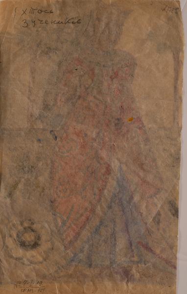 Presumably, this work was performed by one of Mykhailo Boichuk's students. In the upper left corner on the reverse side of the sheet, there is an inscription "Хтось з учеників'' made by Yaroslava Muzyka. In 1973, this unique exhibit item got into the collection of Lviv National Art Gallery from the private collection of Yaroslava Muzyka, who closely worked with Boichuk and his followers during the Lviv period of the artist's life. Yaroslava Muzyka lived in a house on Charnetskyi Street (now Vynnychenko Street, 26), where Boichuk's studio was located; she managed to preserve a significant amount of archival material and some works that remained after the artist’s moving to Kyiv.