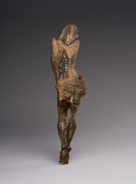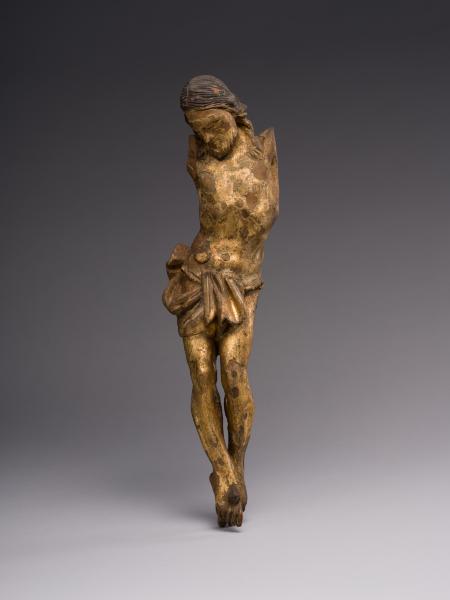 In the Middle Ages, the West abandoned the idealisation of the Crucified Christ in favour of earthly realism, which contributed to the emergence of the iconographic type of Crucifixion known as Catholic. The cross depicts the dying Saviour. His feet are realistically portrayed as being nailed together with a single nail. The sculptural image from the village in the Brody region falls into this category. Following the examples of Baroque sacred sculpture, Christ's body is bent in an S-shape. The figure of a tortured man is anatomically accurately depicted. The dynamics of the body's posture, the bend of the hips, the chest, the expression of suffering on the face, the tense muscles – all gravitate towards the Baroque style. In this image, the artist has combined physical torment with inner peace, evoking a sense of a higher purpose – the salvation of humanity. Even in its damaged state, this work retains its expressiveness, the tangible tragedy of the image, and the symbolism of sacrifice, which occupied a central place in Christianity.