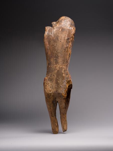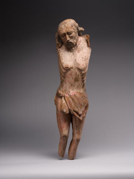 The sculptural image of Christ has suffered significant damage; however, despite this, it is still possible to imagine its original appearance. Christ's stocky body is rendered with pronounced naturalism: there are hints of anatomical recreation of the chest with protruding ribs and legs bent at the knees. The artist paid particular attention to the textured face, with closed eyes, sunken cheeks, and sharp cheekbones, as well as slightly raised eyebrows, all of which indicated unspeakable pain and suffering. Christ's naked body is covered with a loincloth tied with a thick cord. The sculptural image is made decorative by the smooth, shallow diagonal folds of the bandage on the hips. The sculptural image embodies the theme of suffering, where the language of art serves to draw people closer to the mystery of Christ's sacrifice.
