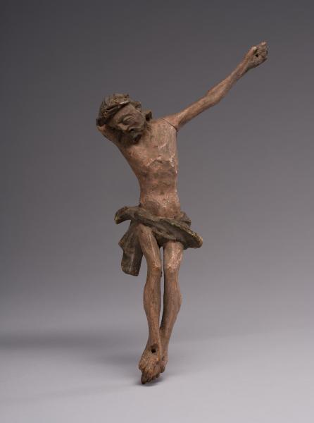 The sculptural Crucifixion is notable for its drama and depth of image. Christ is depicted at the moment of greatest physical and spiritual suffering, emphasised by the tension of his body and the expression on his face – sad and sorrowful, with a hint of submission. The figure of Christ is texturally detailed. The master's desire to convey the anatomical features of the human body is evident, as seen in the defined muscles and the relief of the chest and abdomen. The folds of the loincloth tied in a knot create an additional rhythm in the composition. The crucifixion is an example of wooden sacred sculpture, where minimal means are used to achieve a deep symbolic meaning of the image of Christ, who has undergone severe challenges.