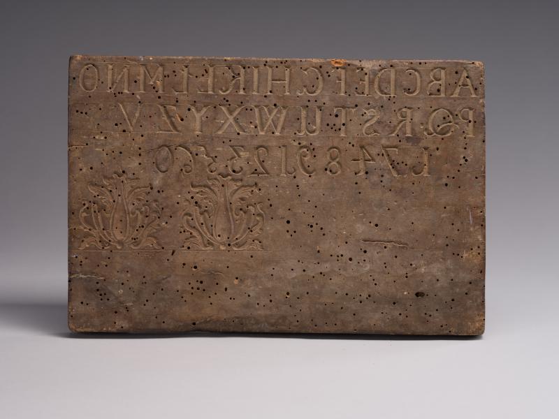 Fragment of a Mould with the Alphabet, Numbers and Ornamentation (1748)