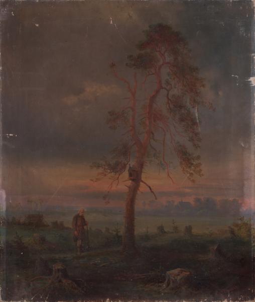 Franciszek Kostrzewski (19 April 1826 – 30 September 1911) was a Polish realist painter, illustrator, and author of satirical drawings and caricatures. He was born in Warsaw to Franciszek, a poor official and administrator of one of the noble palaces, and Dorota, née Żbikowska. In 1831, during the November Uprising, the family moved to an estate in the Sandomierz Voivodeship, where the artist spent his childhood. After graduating from secondary school in Warsaw, F. Kostrzewski decided to devote himself to artistic creation, but his father arranged for him to work in one of Warsaw's offices. Soon, the young man was dismissed after his boss noticed drawings on the documents. After that, his father allowed his son to pursue an artistic career. From 1844 to 1849, F. Kostrzewski studied at the Warsaw School of Fine Arts under the guidance of Chrystian Breslauer, Aleksander Kokular, Rafał Hadziewicz, Marcin Zaleski, and Jan Feliks Piwarski. The latter had the most significant influence on the young man's work. From 1849 to 1851, F. Kostrzewski spent time in Kielce at the invitation of the famous collector Tomasz Zieliński. Copying paintings allowed the artist to master the stylistic features of 17th-century Dutch painting. After returning to Warsaw, F. Kostrzewski worked as an art teacher, mainly in aristocratic families. Between 1850 and 1860, he created over 200 watercolours, drawings for 7 albums, portraits, and caricatures. He depicted scenes from urban and rural life. He earned his living by giving art lessons and making shop signs. In 1852–1853, he was commissioned by the Steamship Company to paint several compositions on sheet metal to decorate passenger ships sailing on the Vistula River. In 1854, he married Lucyna, née Żukowska. He had three children: two daughters and a son, Stanisław, who became an artist. In 1856, F. Kostrzewski took a several-month trip to Dresden, Berlin, Vienna, Brussels, and Paris, which had a decisive influence on his creative development. During this time, he deepened his knowledge of the work of the "Little Dutchmen" and became acquainted with the landscapes of the representatives of the "Barbizon School". After returning to Poland, he worked as an illustrator. In 1858, his works were published in a number of periodicals. In 1858–1859, he became co-editor of the satirical magazine "Wolne Żarty", and from 1859 to 1911, he worked as a cartoonist for "Tygodnik Ilustrowany". F. Kostrzewski's drawings were published in literary and satirical magazines, including "Biesiada Literacka" (1894–1905), "Kłosy" (1865–1890), "Kolce" (1874–1910), "Kurier Świąteczny" (1883–1911), and "Wędrowiec" (1869–1905). On 3 October 1859, the first part of the story "The History of Unicorns with 32 Images", one of the oldest Polish comics, was published. From 1868, the artist taught at Maria Lubenska's School of Drawing and Painting. From the 1870s, he devoted himself mainly to illustration and gradually gave up painting almost entirely. He often combined drawings into thematic series, such as 2The Story of an Only Child". In 1891, "The Monument" was published in Warsaw, in which the artist described his life. He died in Warsaw and was buried in the Powązki Cemetery.