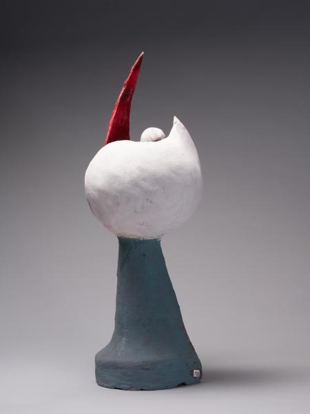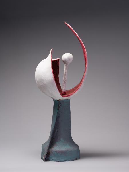 The war brought Dzyndra to Bratislava and later to a displaced persons camp near Munich, where he established a carving school. Together with Yurii Solovii, he joined the Association of German Artists (1946) and participated in Ukrainian émigré exhibitions in Regensburg, Berchtesgaden, Munich, Bamberg, and Nuremberg. He received his first favourable reviews, notably from I. Keyvan, who described Dzyndra as a representative of the young Ukrainian artistic generation who had “begun to reveal his talent”. Synthesising various influences, in the late 1940s and early 1950s, Dzyndra created around seventy expressive easel sculptures based on mimetic principles and experimentation with diverse stylistic approaches.