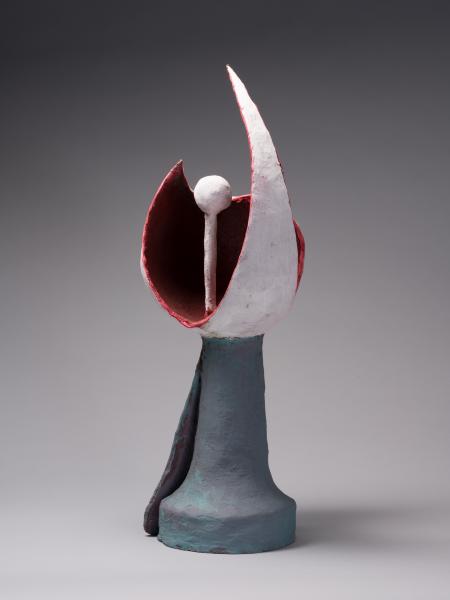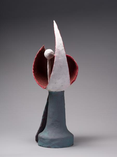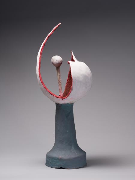 In 1964, during one of the group exhibitions, Dzyndra “met the brilliant Ukrainian master Oleksandr Arkhypenko” and, “upon returning home, destroyed all his ‘thematic sculptures’”. The subsequent decades were marked by a rejection of representational art and a turn toward “contemporary-style sculpture”, with experiments in the concepts of “sculpture of plastic associations”, “abstract sculpture of free form”, and “sculpture of architectural form”, as well as the creation of relief abstract compositions, grotesque portraits, and graphic and pictorial works.