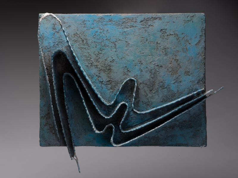 In 1964, during one of the group exhibitions, Dzyndra “met the brilliant Ukrainian master Oleksandr Arkhypenko” and, “upon returning home, destroyed all his ‘thematic sculptures’”. The subsequent decades were marked by a rejection of representational art and a turn toward “contemporary-style sculpture”, with experiments in the concepts of “sculpture of plastic associations”, “abstract sculpture of free form”, and “sculpture of architectural form”, as well as the creation of relief abstract compositions, grotesque portraits, and graphic and pictorial works.