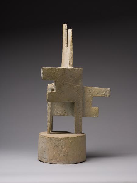 In 1964, during one of the group exhibitions, Dzyndra “met the brilliant Ukrainian master Oleksandr Arkhypenko” and, “upon returning home, destroyed all his ‘thematic sculptures’”. The subsequent decades were marked by a rejection of representational art and a turn toward “contemporary-style sculpture”, with experiments in the concepts of “sculpture of plastic associations”, “abstract sculpture of free form”, and “sculpture of architectural form”, as well as the creation of relief abstract compositions, grotesque portraits, and graphic and pictorial works.