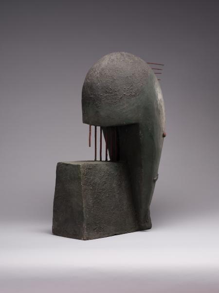 The war brought Dzyndra to Bratislava and later to a displaced persons camp near Munich, where he established a carving school. Together with Yurii Solovii, he joined the Association of German Artists (1946) and participated in Ukrainian émigré exhibitions in Regensburg, Berchtesgaden, Munich, Bamberg, and Nuremberg. He received his first favourable reviews, notably from I. Keyvan, who described Dzyndra as a representative of the young Ukrainian artistic generation who had “begun to reveal his talent”. Synthesising various influences, in the late 1940s and early 1950s, Dzyndra created around seventy expressive easel sculptures based on mimetic principles and experimentation with diverse stylistic approaches.