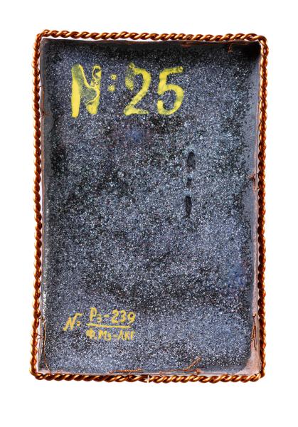 Yaroslava Muzyka (Stefanovych) was born in Zaliztsi in Ternopil region on January 10, 1894. She died on November 24, 1973, in Lviv. She was an artist of diverse preferences and talent. She turned to graphic art – linocuts, woodcuts, drypoint, monotype; painting – oil, tempera, gouache, encaustic; mosaic and enamel, on glass, grattage on gold or silver foil, batik, embossing on leather, embossing on metal. She studied drawing and painting at Leonard Podhorodecki Free Academy of Fine Arts in Lviv and André Lhote Academy in Paris. In 1928, she trained as an art restorer at the Central State Restoration Workshop of Ihor Grabar in Moscow. She also worked at the National Museum in the restoration workshop. Yaroslava Muzyka was one of the founders of the Association of Independent Ukrainian Artists (AIUA), a Ukrainian public art organization that operated in Lviv from 1931–1939. In 1937, the artist learned the difficult technique of burning enamel objects by attending Mariia Dolnytska classes in Lviv. In addition, she studied on her own using French and German enamelling manuals. The artist worked in the technique of bulk (scenic, painted) and cloisonne enamel. Her favourite subjects in the enamel works were Hutsul demonology, pagan mythology, beliefs of ancient Slavs, the works by Taras Shevchenko, images of animals, and female portraits.
